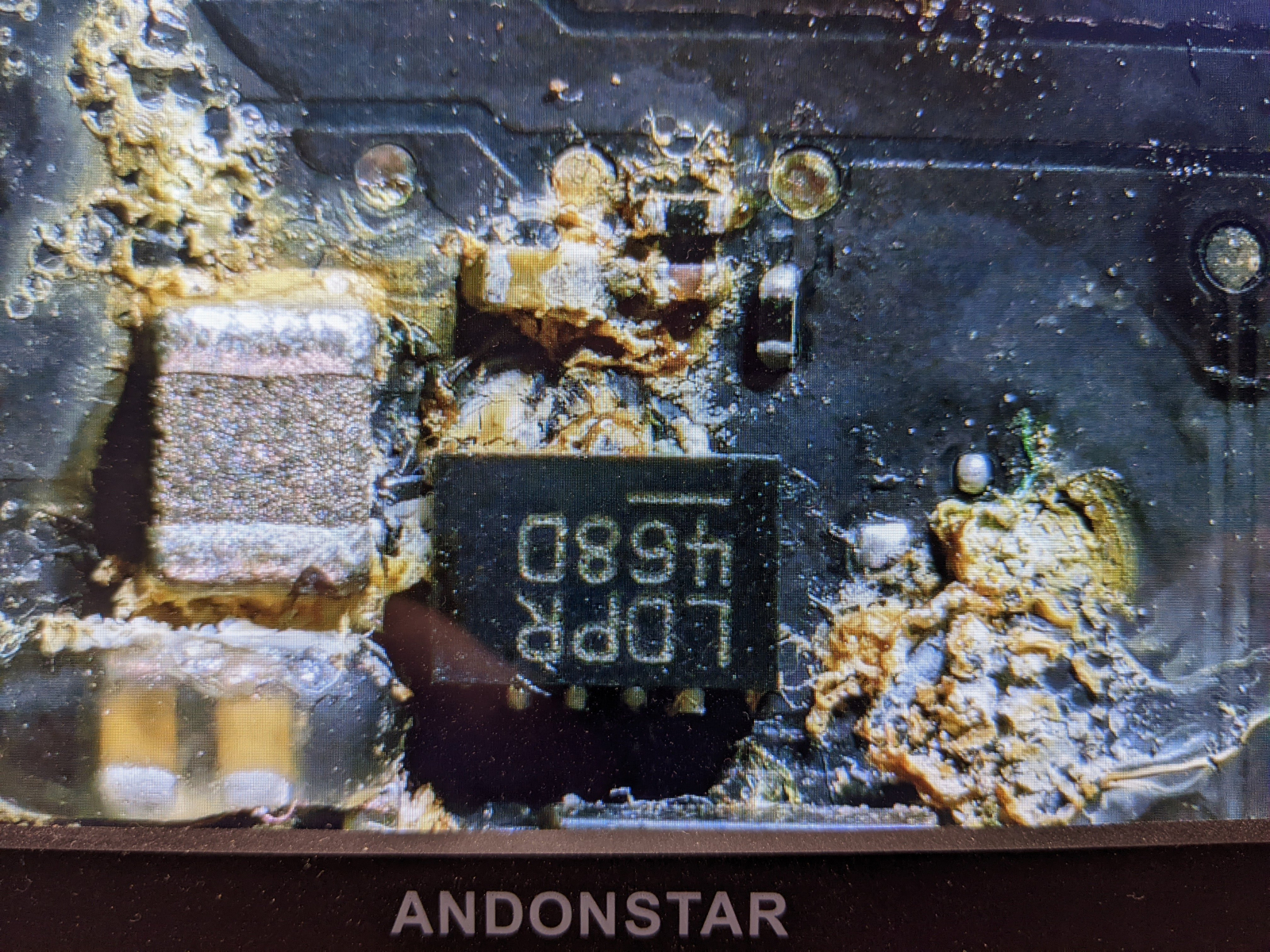 These images are from a MacBook Air that was allowed to ‘dry out’ overnight. Unfortunately the laptop was powered on at this point and if damage had not already occurred then it probably did when powered on. There was still liquid present inside the machine and corrosion that would need cleaning and some of the components were blown.